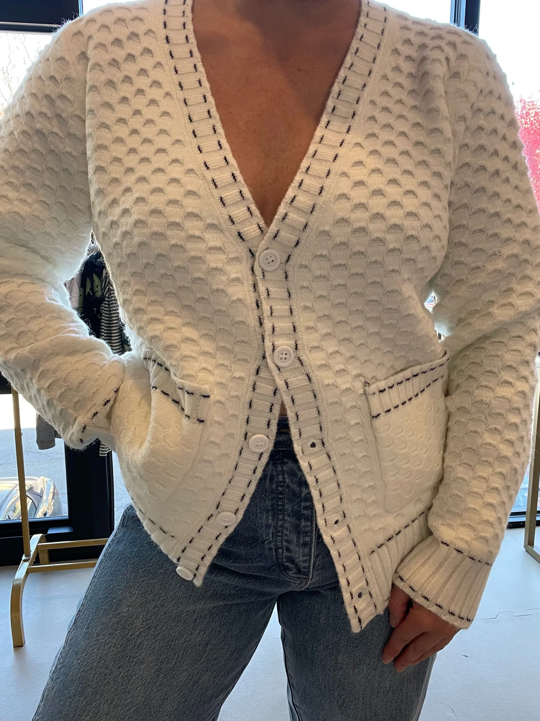 Marie Rose › Contrast Stitch Sweater Image 1 of 3 Image 2 of 3 Image 3 of 3 Contrast Stitch Sweater $68.00 Size: S/M M/L Quantity: Add To Cart Added!